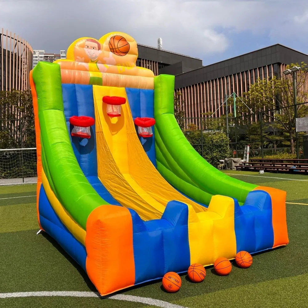 3 Laned Inflatable Basketball Hoop Game Inflatable Basketball Goal with 4 Balls Ball Shot for Outdoor Party Event