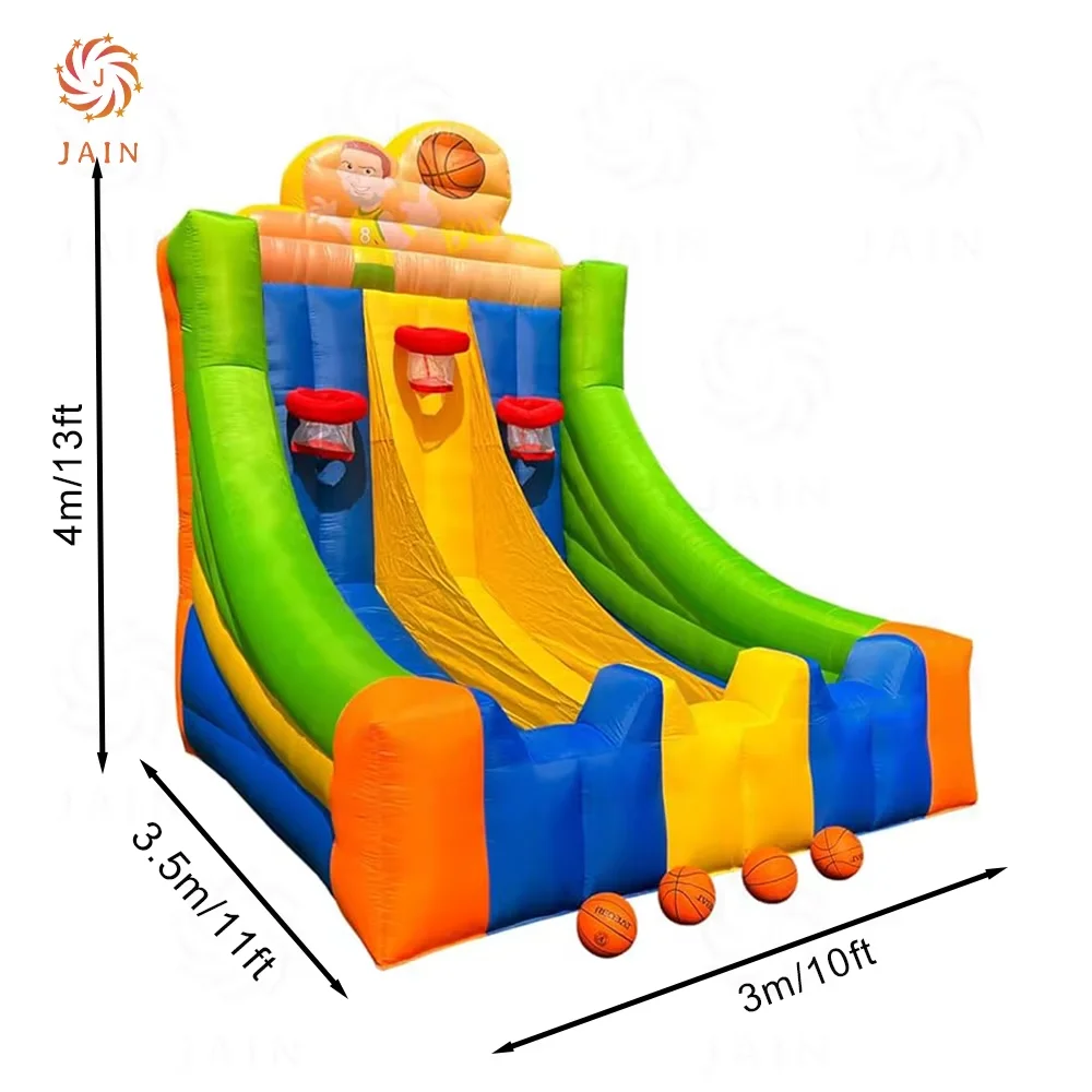 Description: 10ft wide x 11.5ft deep x 13.1ft high, Basketball Hoops Game Fancy something competitive? our new Basketball Shoot. Boasting highly bright colours, triple lane inflatable will give you a real buzz of fun. The inflatable, that comes supplied with basketballs has a sloped wall, so the balls just keep on rolling back at you. No need to remove your shoes, and even fun for non-sports people, shooters will find this game surprisingly addictive! Feel free to add a timer, and start a race – most baskets in 60 seconds! This would work perfectly for company fun days, schools fairs and other events as it attracts players both young and old. This game is also hugely popular as a Corporate Games Activity or as part of a Company Team Building Package.