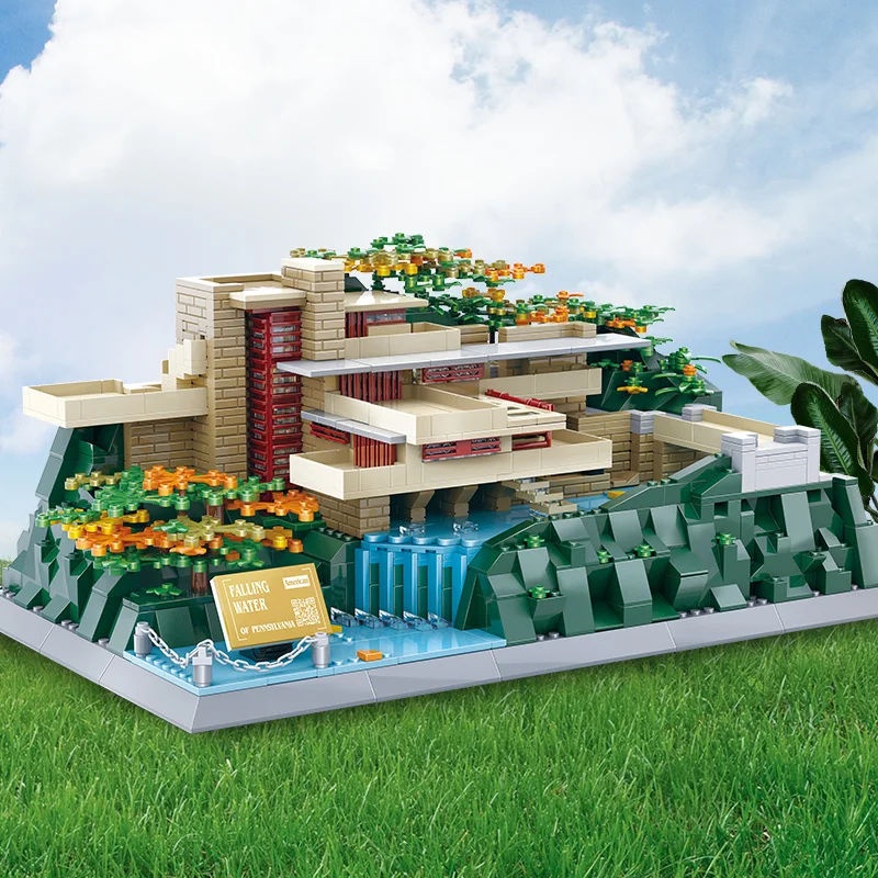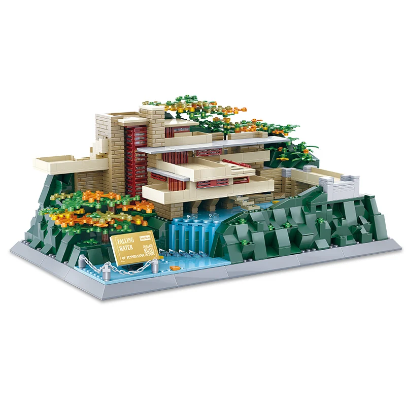 5232 1221pcs ABS World Architecture City Scenery Brick Fallingwater-Pennsylvania,US Building Blocks for Children Collection Toys