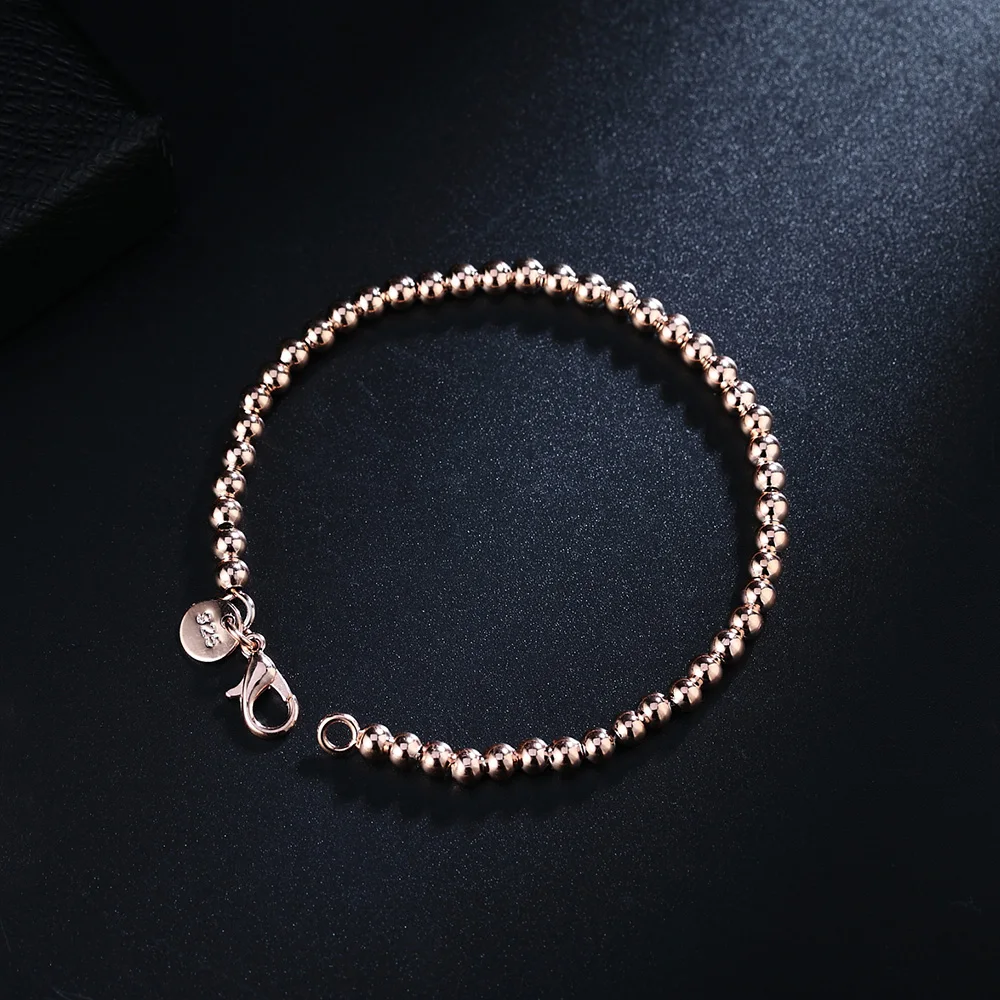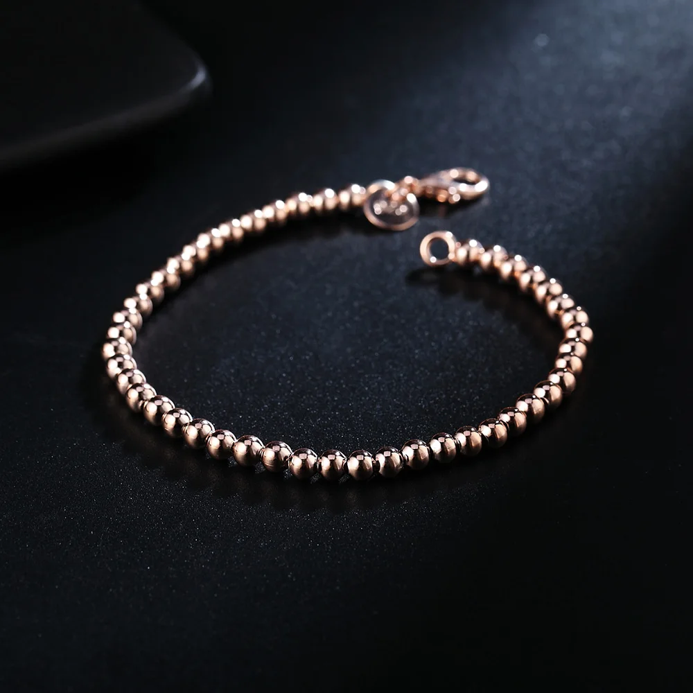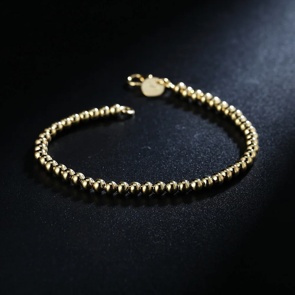 925 sterling Silver 18K gold color 4MM beads Chain Bracelets for Women Fashion Party Wedding Accessories Jewelry Christmas Gifts