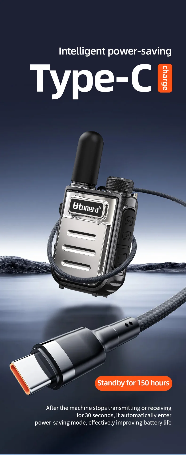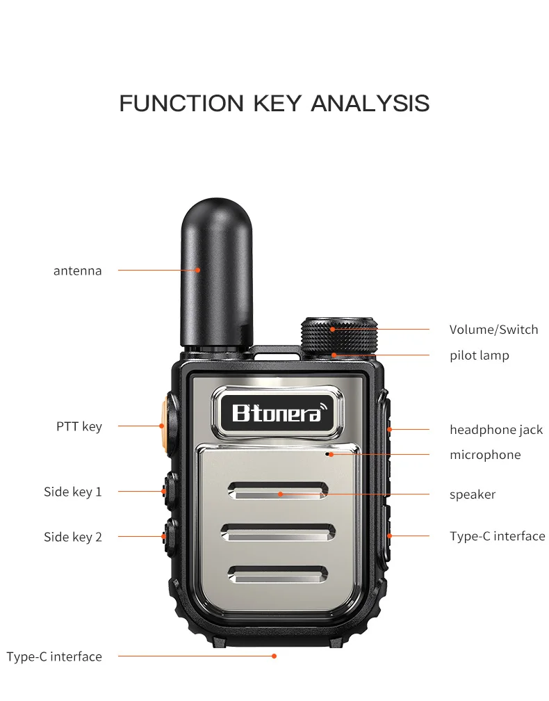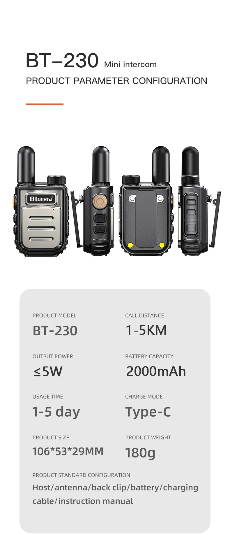 BTONERRA BT230 Mini Walkie Talkie TYPE-C Rechargeable Handheld 1-3km Radio Transceiver Interphone Child Christmas Toys Gifts