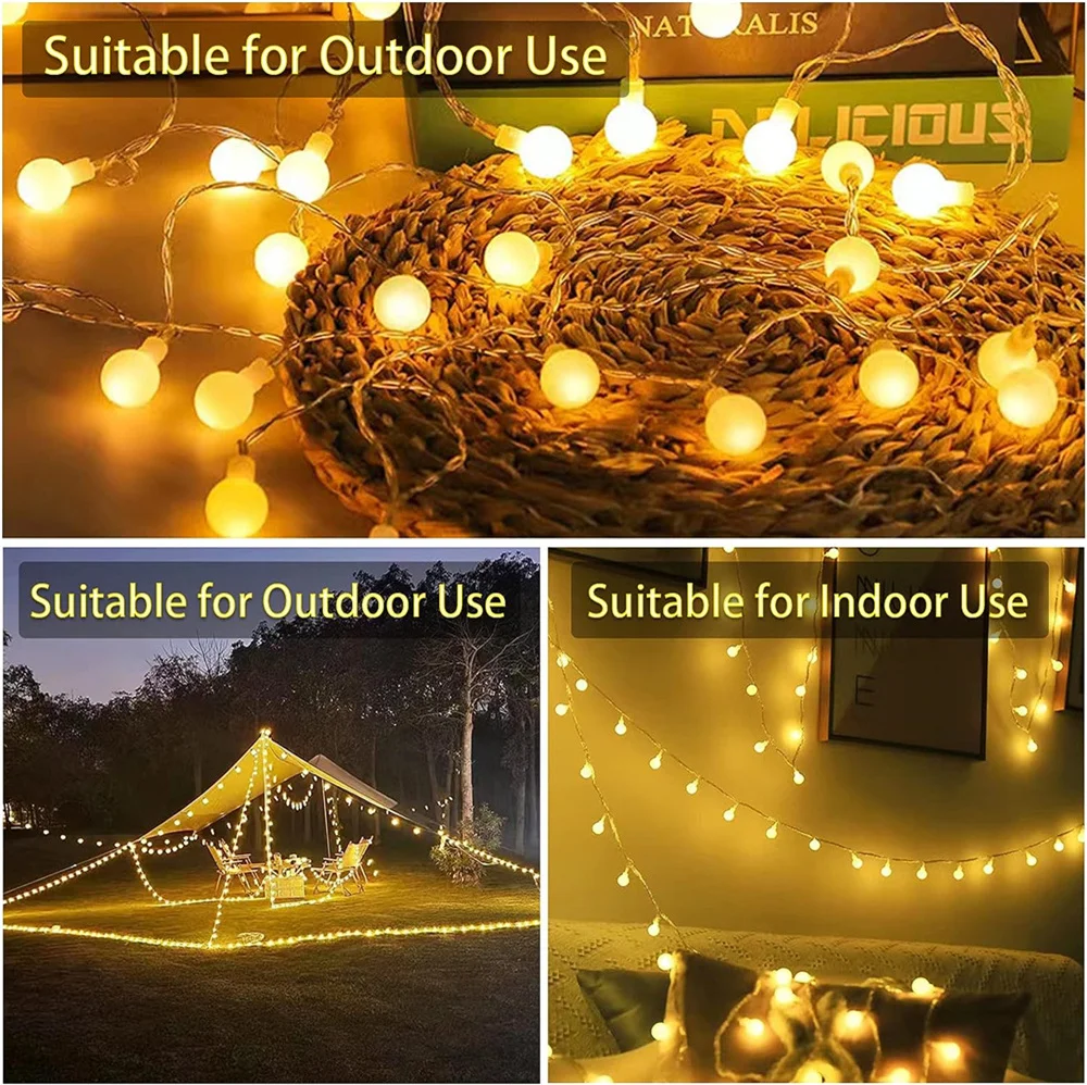 Romantic and practical outdoor party string lights: 10M fairy lights come with 100 very cute frosted globes. Small decor bring you great satisfication in life. Very flexible and easy to hang.