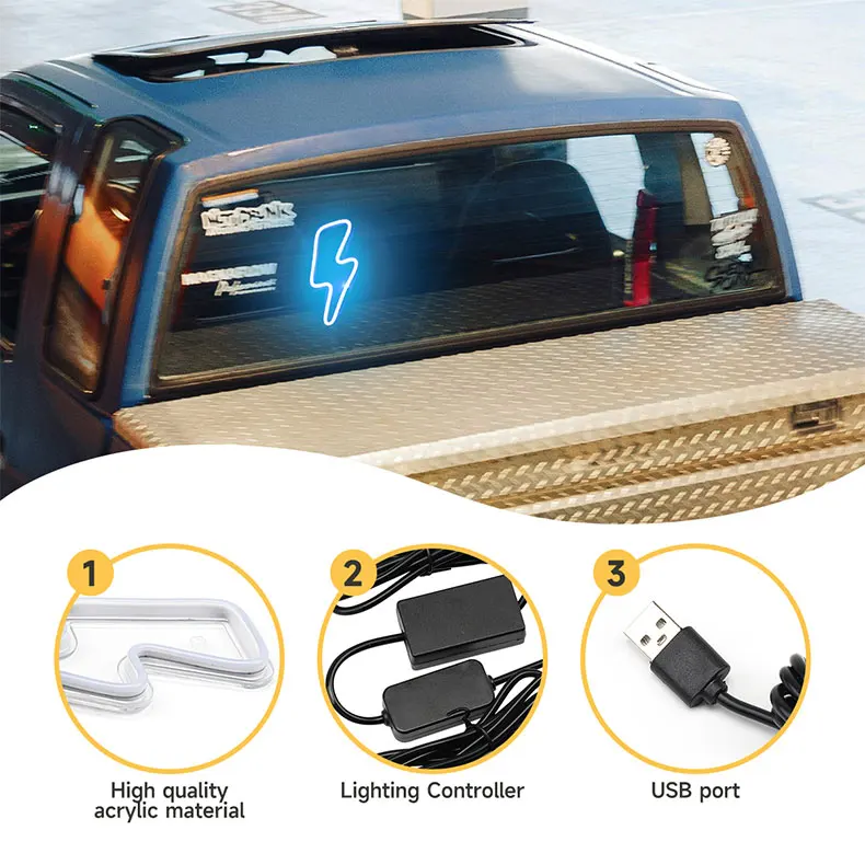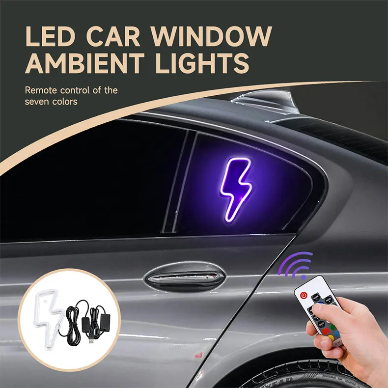 USB Car LED Window Light Car Interior Decoration Ambient Light Flashing Glowing Heart-shape Lighting Atmosphere Lamp LED Sign