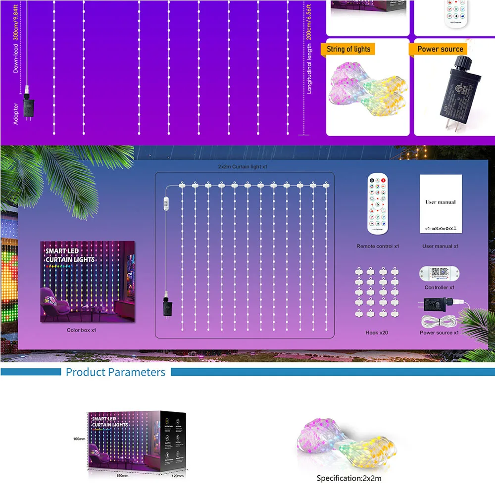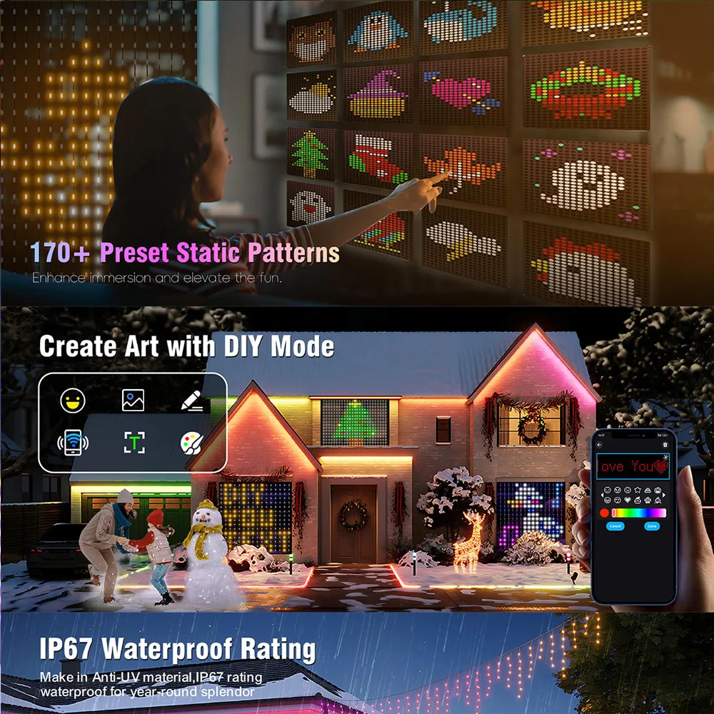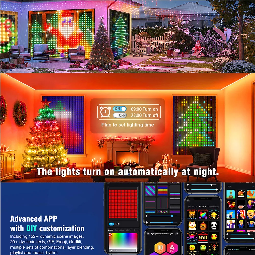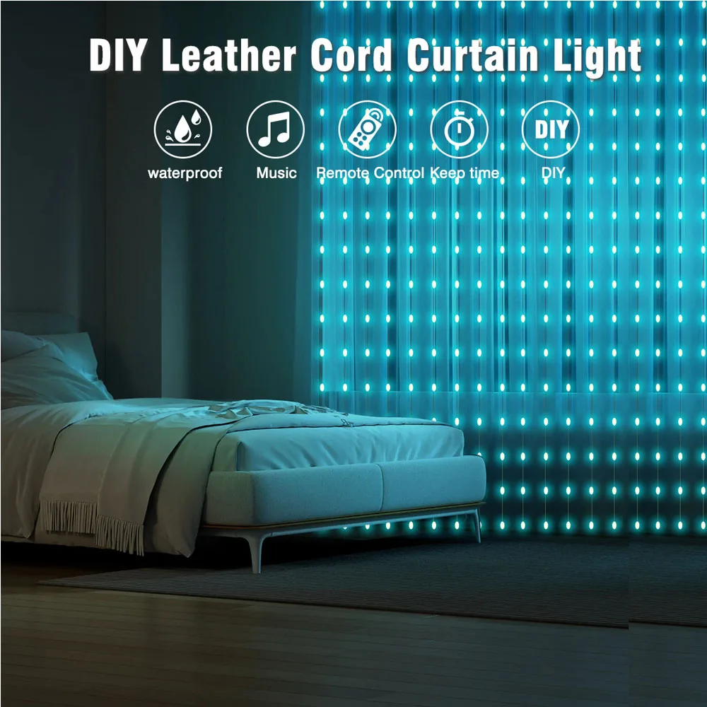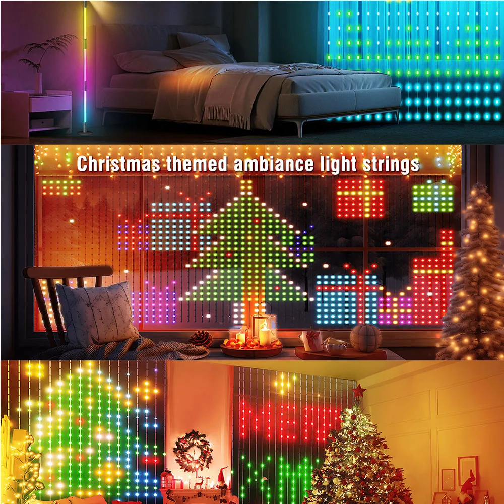 USB Smart LED Curtain Light APP Control RGB Dimmable DIY Pattern Music Ambient Lighting For Home Holiday Party Christmas Decor
